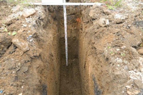 A trial pit (a.k.a. test pit) is a ground investigation technique that is used as a means of investigating, in large scale, the condition of the ground and the type of strata present at shallow depth, typically before beginning construction works. They are useful for obtaining large volume bulk samples of the ground.