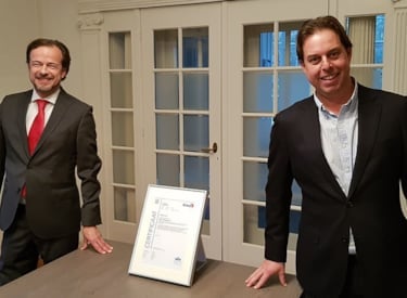 Kiwa today awarded the first certification for privacy information management to Hartis Telezorg. This new standard was developed by experts from Kiwa in close cooperation with NEN. Organisations that have made visibly good arrangements for the protection of privacy in the processing of personal data and meet the requirements of the ISO/IEC 27701 standard are eligible for the certification. Hartis Telezorg from Bussum was the first organisation to receive the certificate from Ronald Westerveen, manager of Kiwa's Cyber Security Expert Centre.