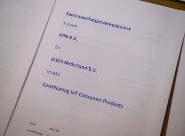 Suppliers and manufacturers can now rely on Kiwa and KPN Security for independent assessment and certification of IoT devices on aspects related to cybersecurity. The two parties signed a cooperation agreement for this on November 2, 2021. This allows suppliers and manufacturers to have their products independently certified at a one-stop-shop, enabling them to bring new products to market quickly.