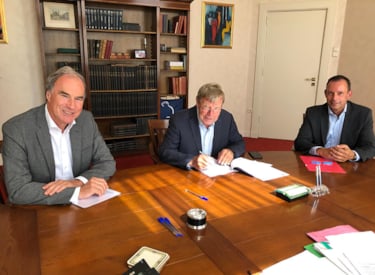 Paul Hesselink (CEO Kiwa), Martien de Graaf (AQS Holding) and Ben Dellaert (Division Director Kiwa Netherlands) sign the agreement.