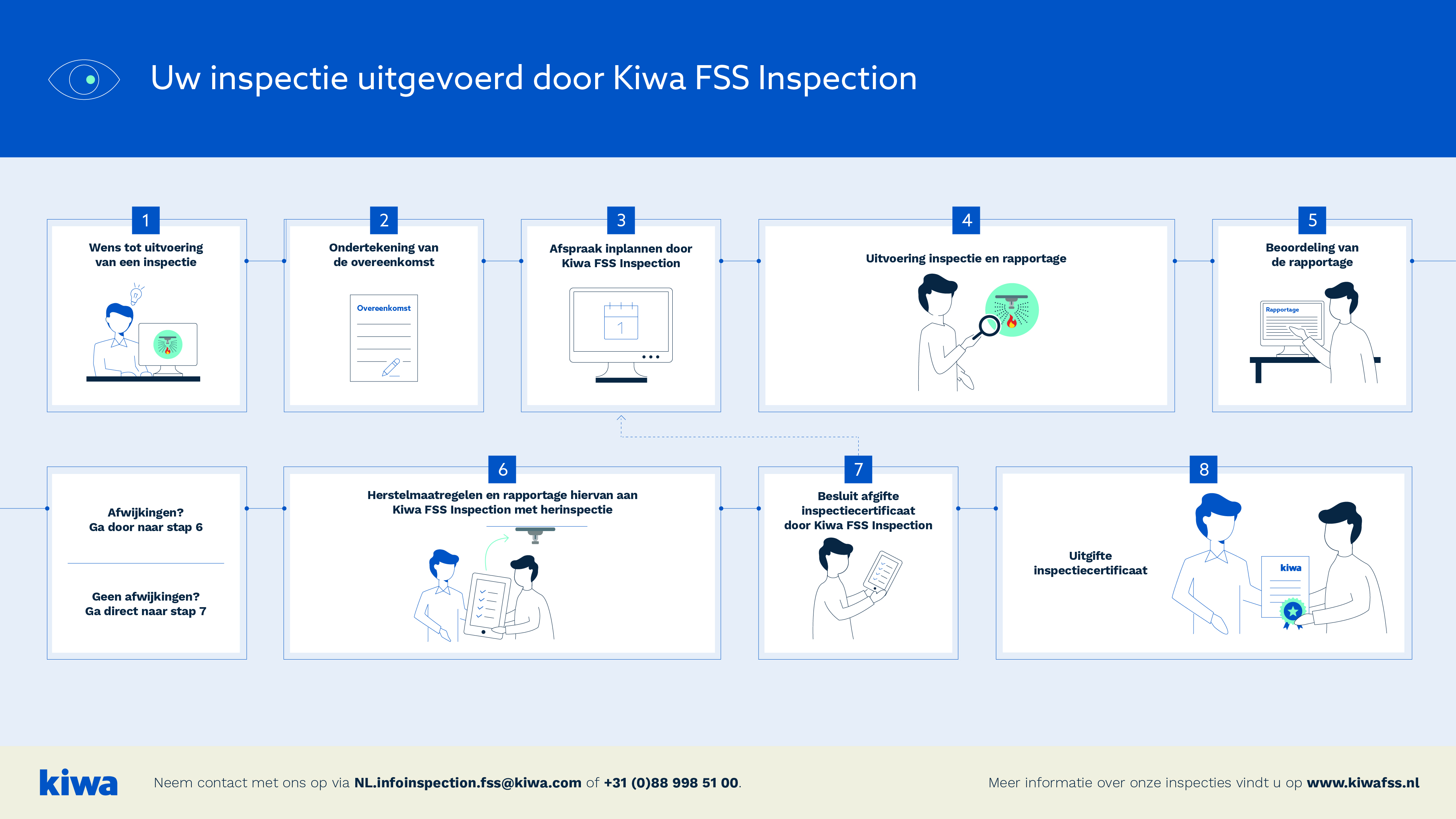 Kiwa Fire Safety & Security (Kiwa FSS) is een toonaangevend TIC-bedrijf voor het Testen, Inspecteren en Certificeren van producten, installaties en bedrijven op het gebied van (brand)veiligheid en beveiliging. Onze TIC-activiteiten zorgen voor kwaliteit, veiligheid, gezondheid, betrouwbaarheid en duurzaamheid. Daarnaast geven wij trainingen vanuit een volledig onafhankelijke, objectieve en integere positie. datacenters, airports, opslag gevaarlijke stoffen en hotels.